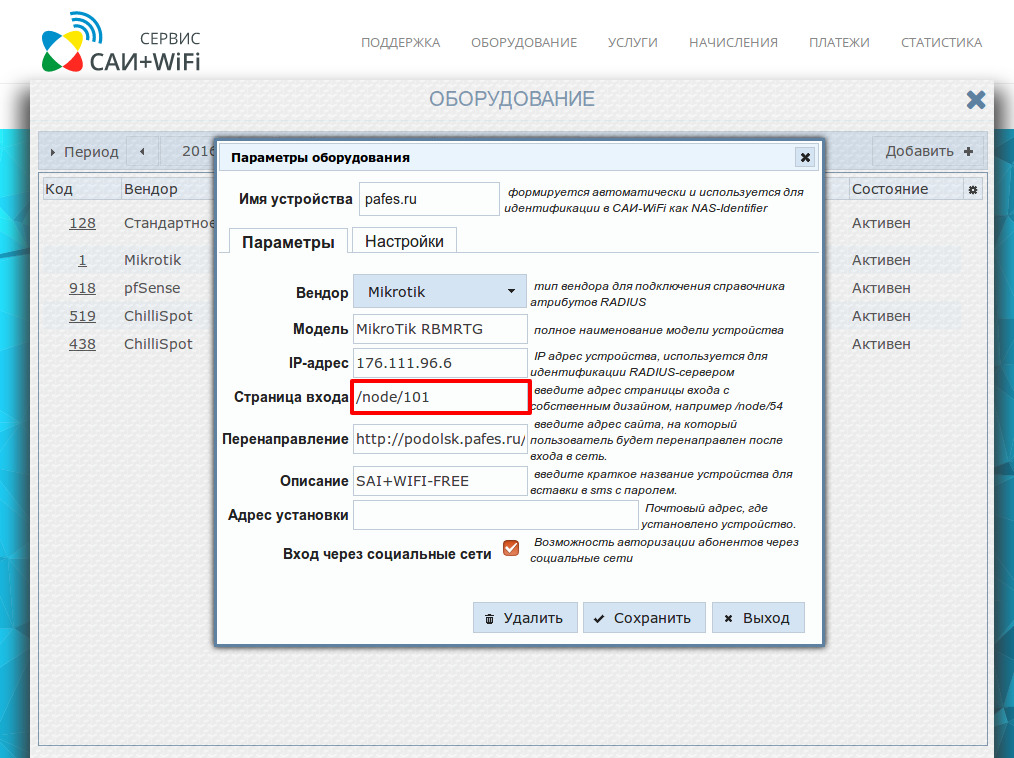 Инструкция по подключению RouterOS к сервису САИ+WiFi.