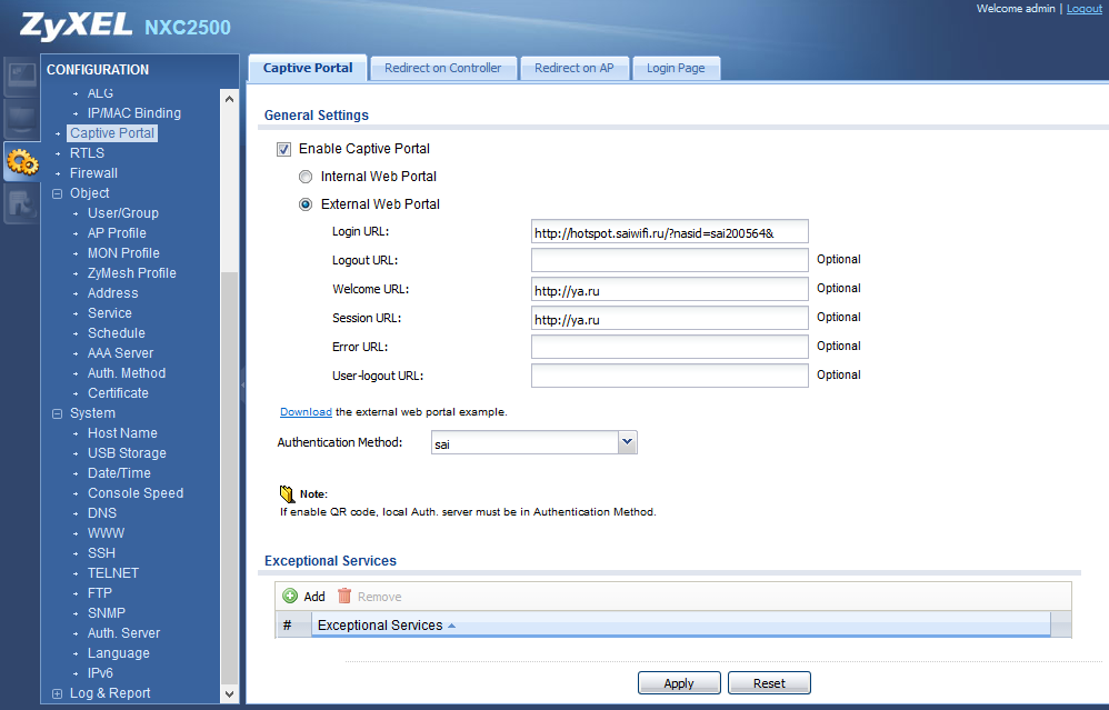 Инструкция по подклученю контроллеров Zyxel NXC2500 и NXC5500 к сервису САИ+WIFi.