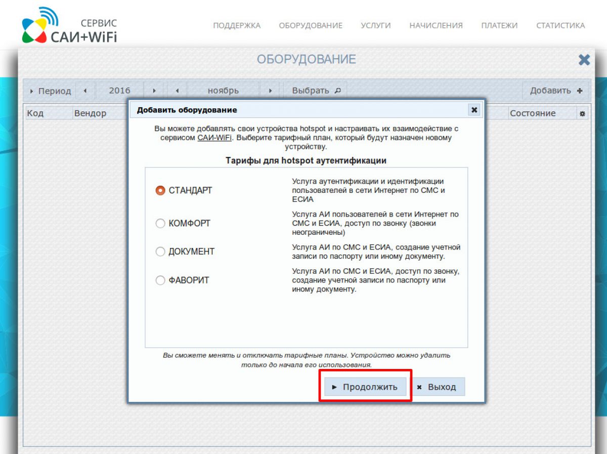 Для работы сервисом вам потребуется оборудование поддерживающие работу внешнего radius server и Hotspot.